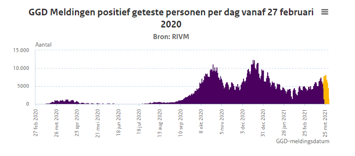 Hieronder in de grafiek kunnen we ook zien dat het aantal besmettingen in de periode van september tot februari ook flink variëren. En veel variatie is nooit een goed teken. Dat bekend dat een proces niet beheerst is en dus lastig te voorspellen.